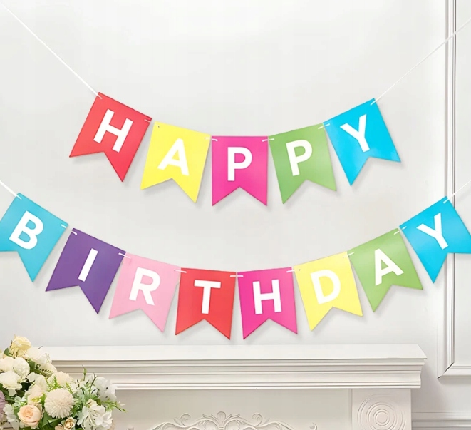 Baner urodzinowy HAPPY BIRTHDAY kolorowy flagi dekoracja girlanda