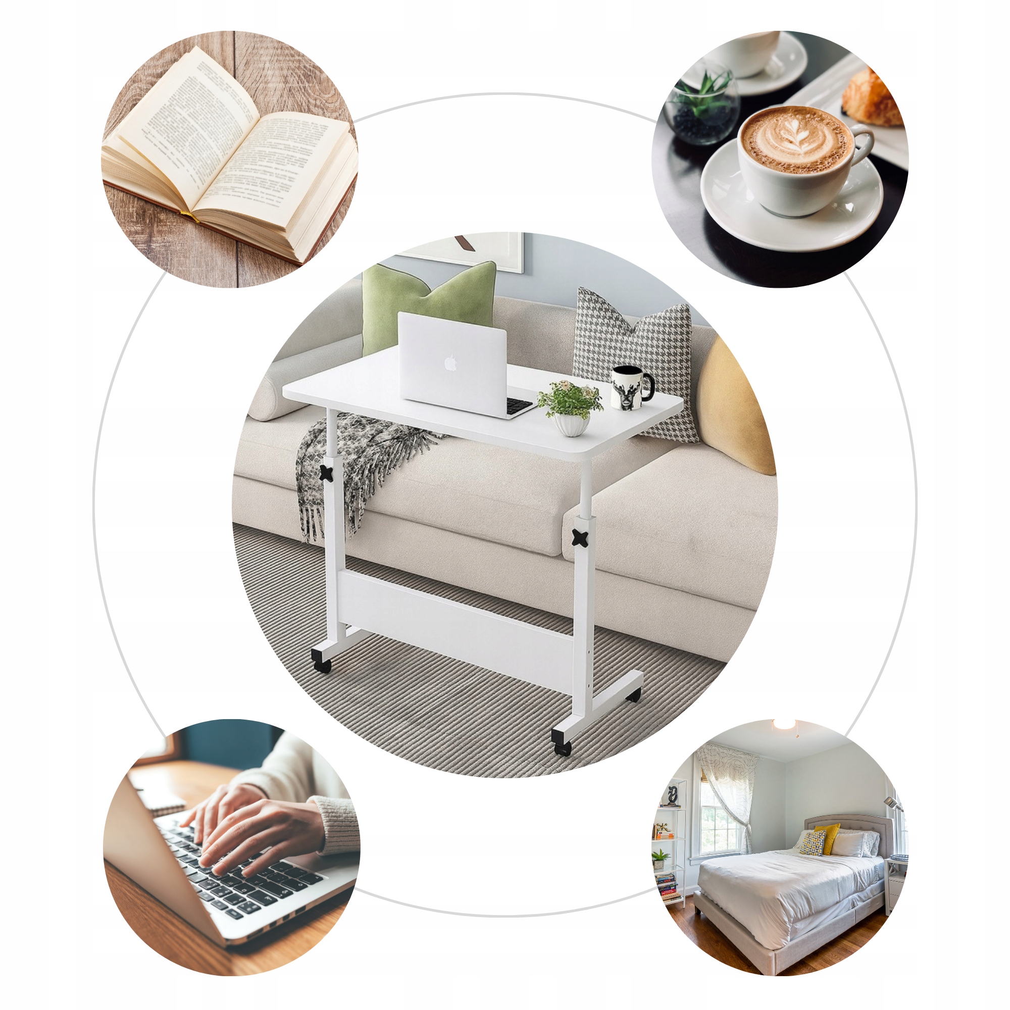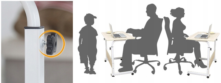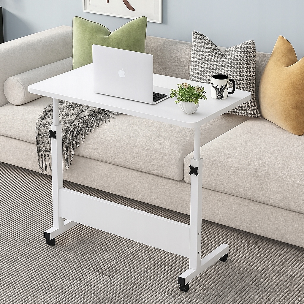 Eleganckie MOBILNE BIURKO REGULOWANE stolik na kółkach POD LAPTOP biały