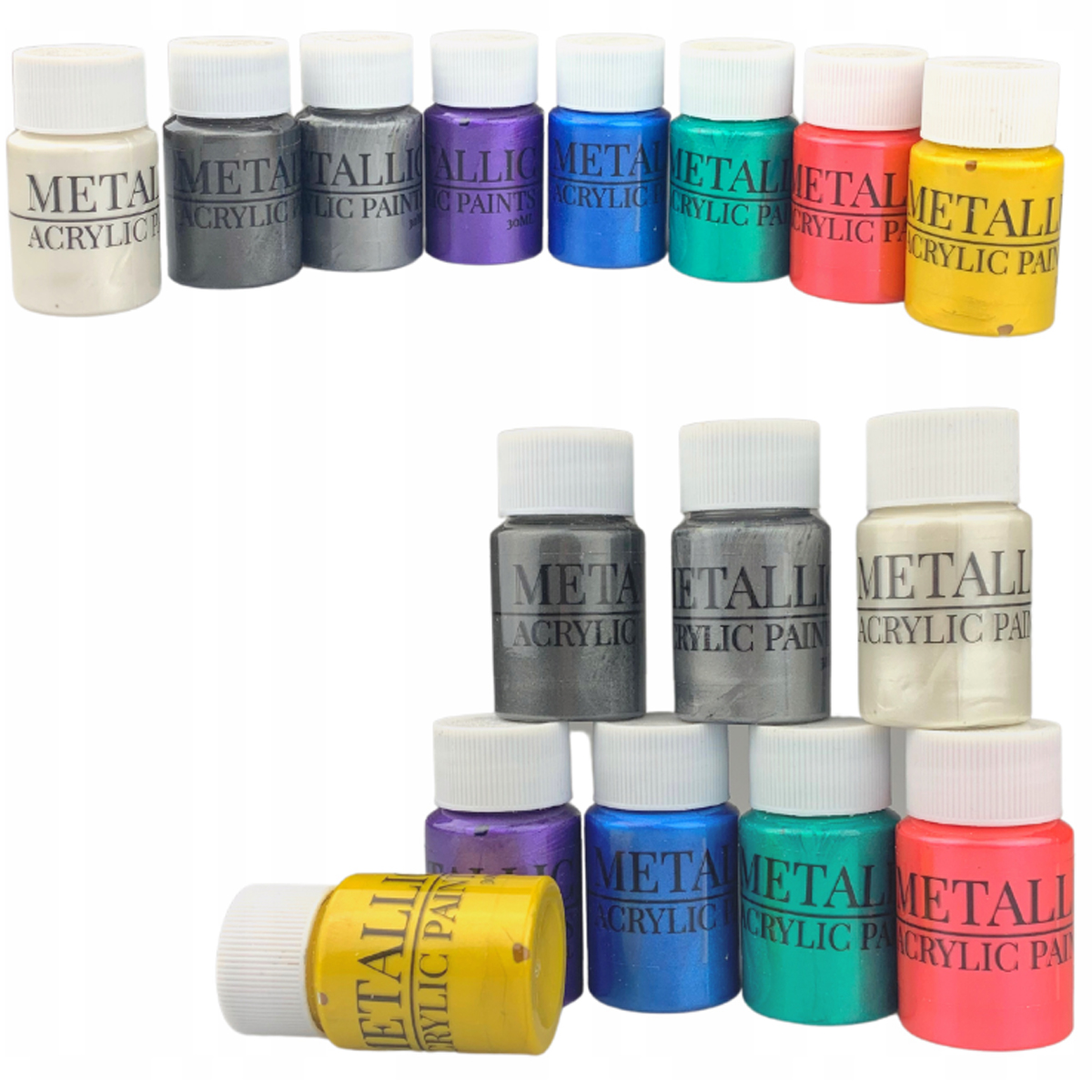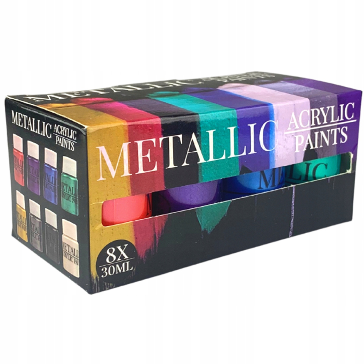 FARBY AKRYLOWE metaliczne 8szt 30ml zestaw farb piękne kolory szybkoschnące