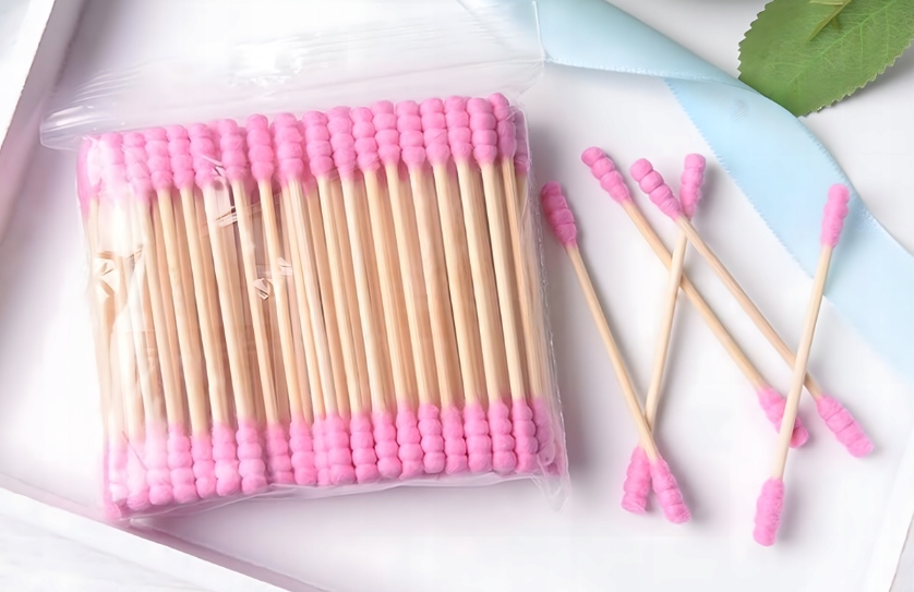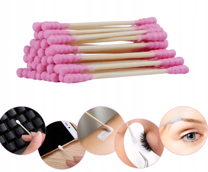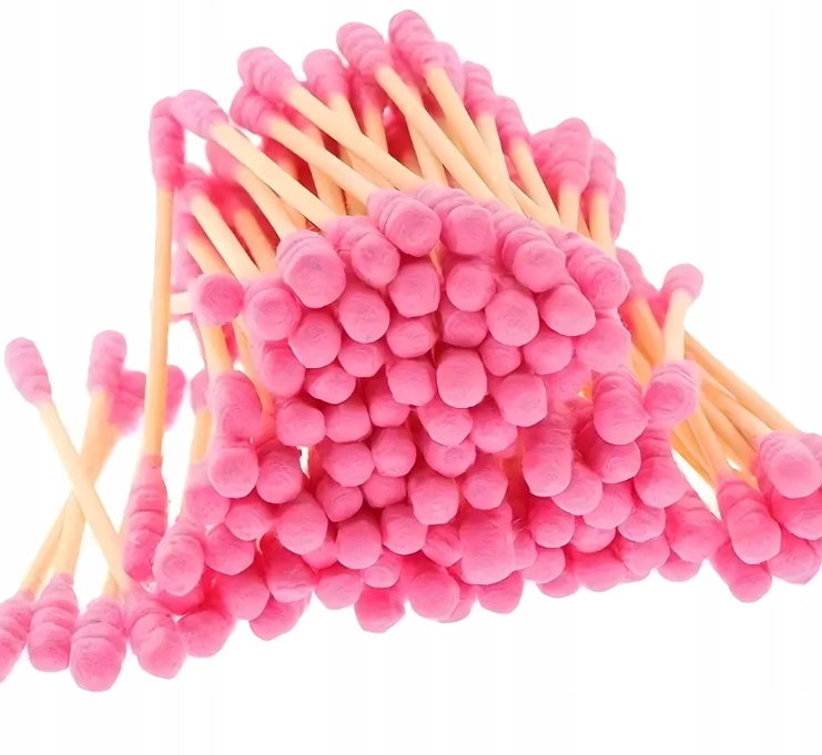 HIGIENICZNE PATYCZKI DO USZU 100 sztuk drewniane kosmetyczne różowe
