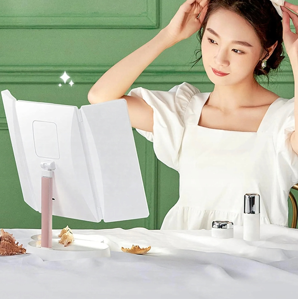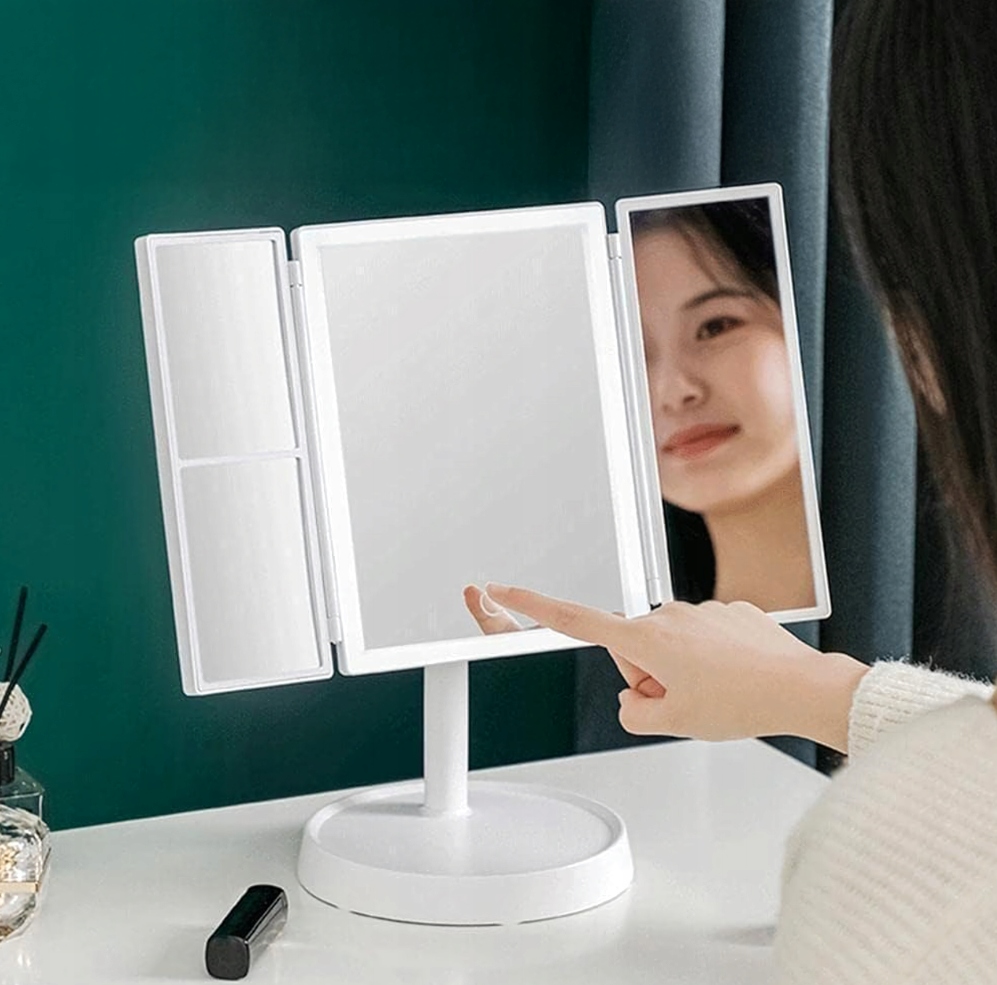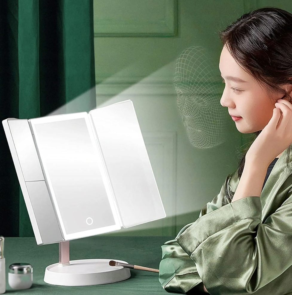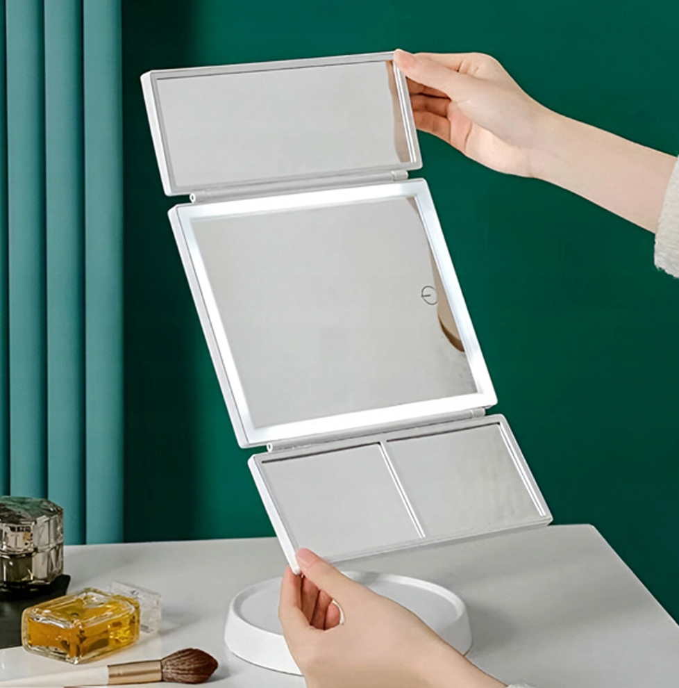 Lusterko kosmetyczne LED x3 – rozkładane, podświetlane, idealne do makijażu