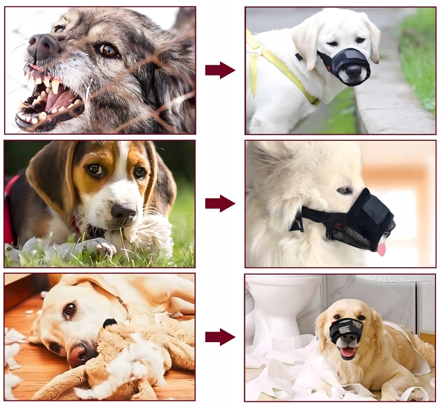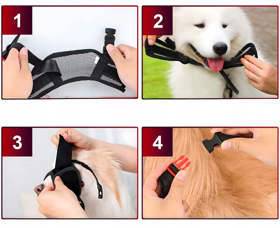 - Regulowany obwód – łatwe dopasowanie do pyska i szyi psa.