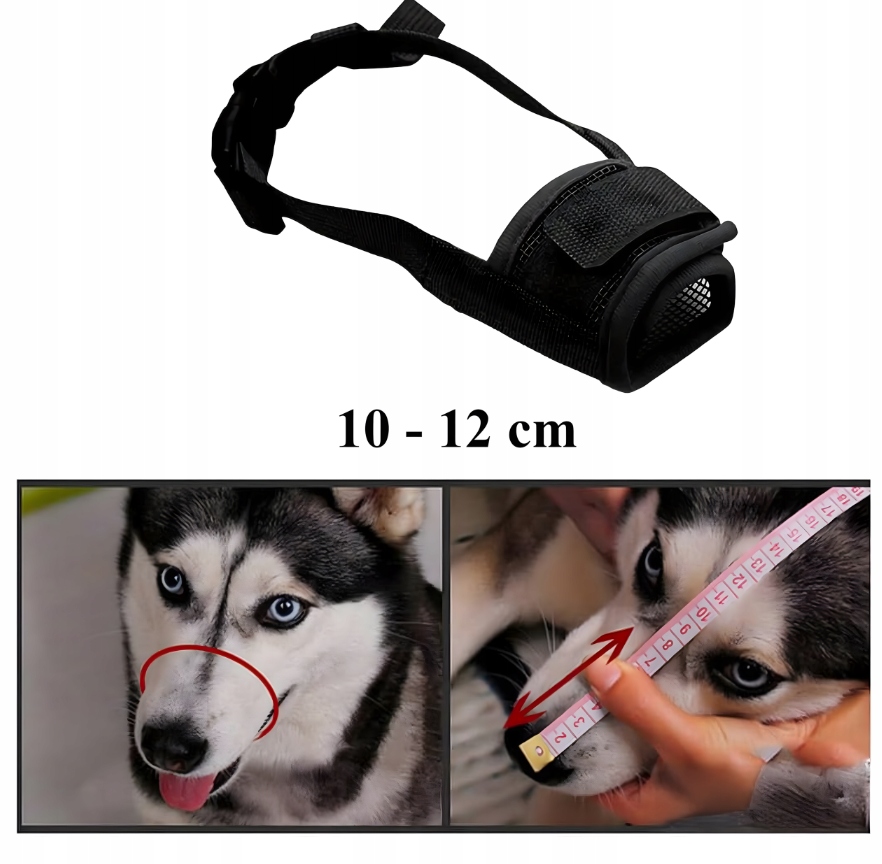 Przed zakupem zmierz obwód pyska psa i dopasuj rozmiar, aby zapewnić mu komfort i bezpieczeństwo.