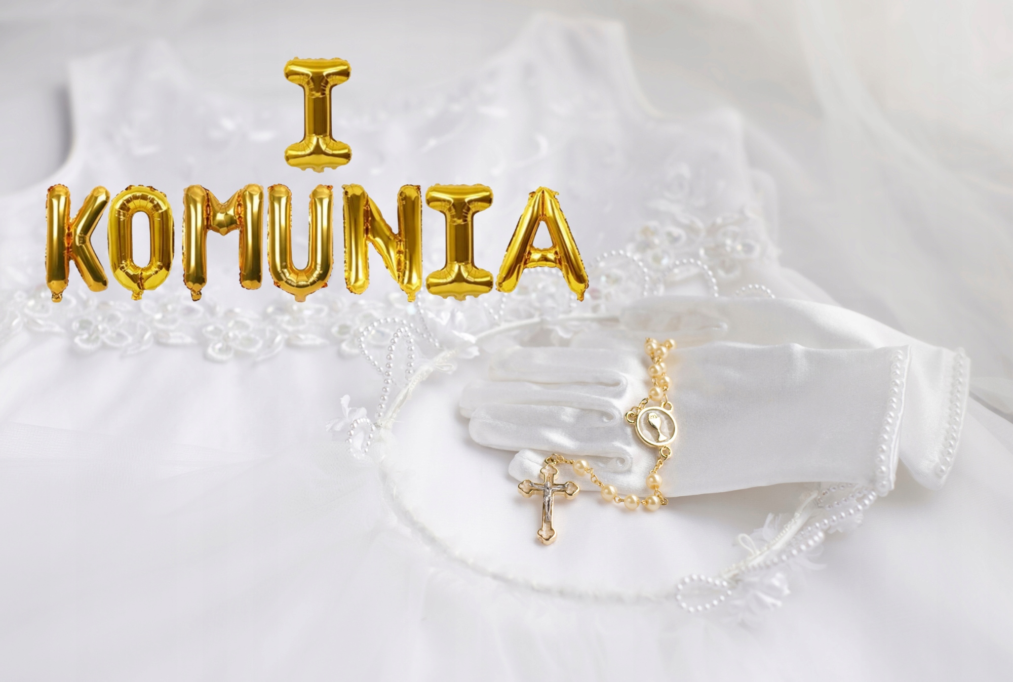 Balony Litery "I KOMUNIA" – Złote, 40 cm – Elegancka Dekoracja na Pierwszą Komunię Świętą