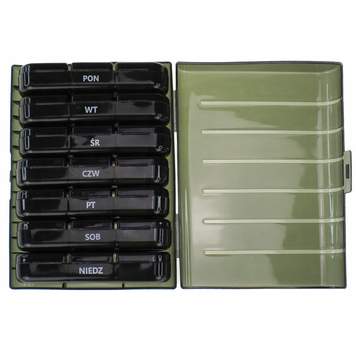 Każdy z siedmiu pudełek jest opisany dniem tygodnia w skrócie po polsku, dzięki czemu bez trudu można odczytać, jaki lek należy przyjąć danego dnia.