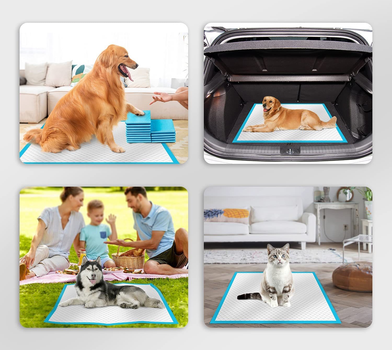 Podkłady są 100% bezpieczne, wykonane z materiałów odpowiednich dla wszystkich zwierząt. Nie zawierają szkodliwych chemikaliów ani drażniących substancji, co jest szczególnie ważne dla szczeniąt i psów z wrażliwą skórą.