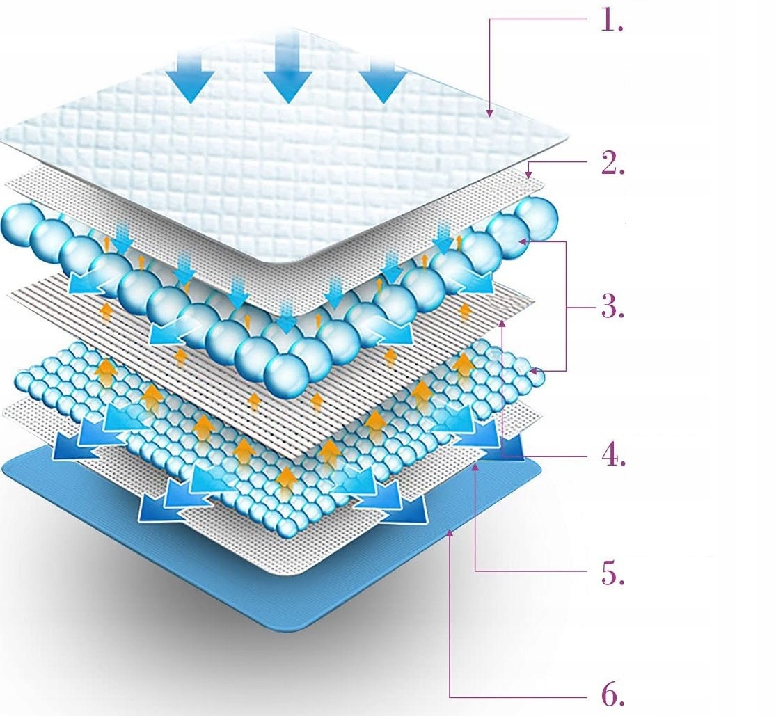 - WARSTWA SUPERABSORPCYJNA, która zamienia płyn w żel, zapobiegając rozprzestrzenianiu się wilgoci.