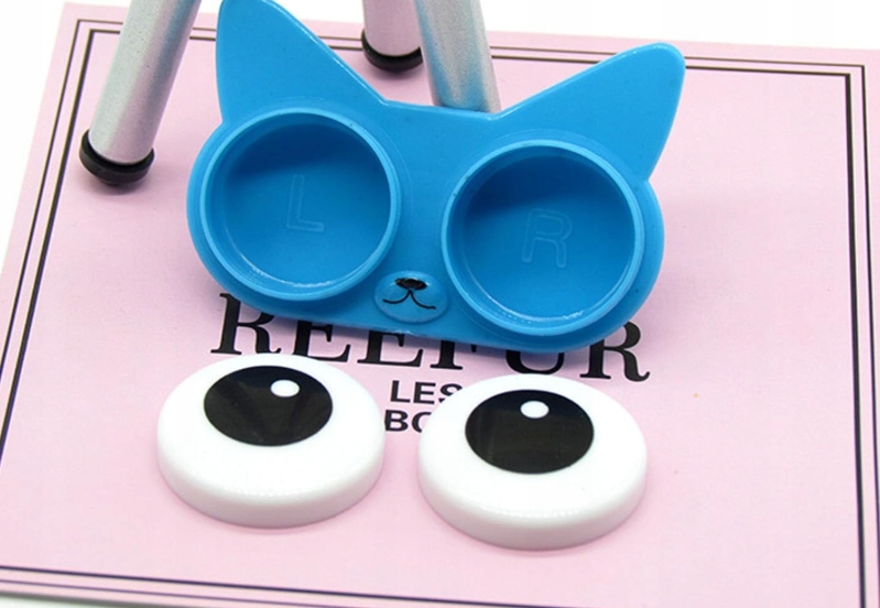 Ten niezwykły pojemnik w kształcie niebieskiego kotka z wielkimi oczami nie tylko zabezpieczy Twoje soczewki, ale też wywoła uśmiech za każdym razem, gdy po niego sięgniesz.