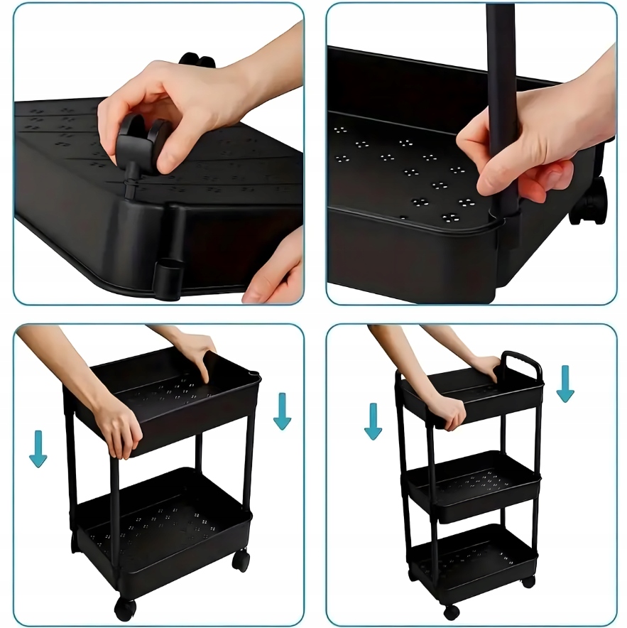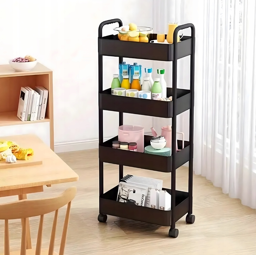 ✅ Duża pojemność – Cztery poziomy półek umożliwiają wygodne przechowywanie żywności, kosmetyków, chemii, zabawek i innych drobiazgów.