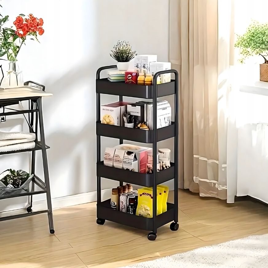 Mobilny regał 4-poziomowy to praktyczne i eleganckie rozwiązanie, które ułatwia organizację przestrzeni w każdym domu.