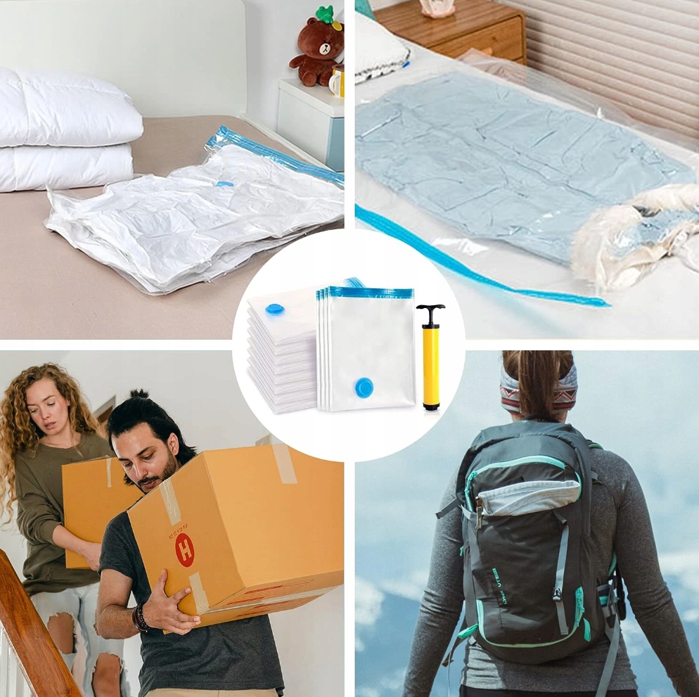 Ułatwia kompresję odzieży, pościeli, koców i innych tekstyliów