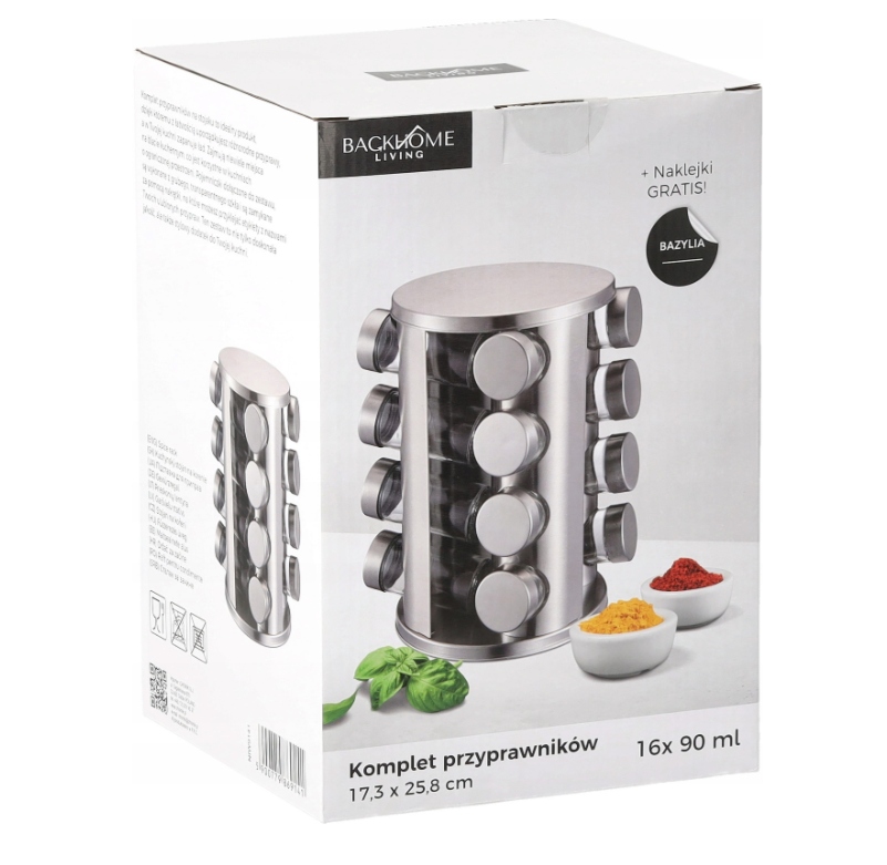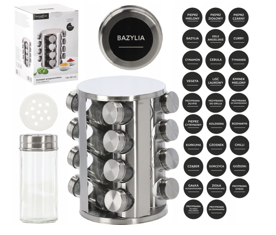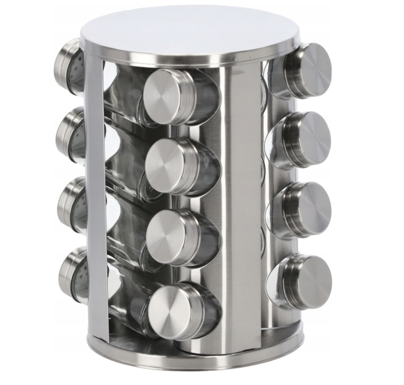 Wprowadź harmonię i funkcjonalność do swojej kuchni dzięki nowoczesnemu, obrotowemu przyprawnikowi ze stali nierdzewnej. To stylowy i praktyczny sposób na przechowywanie aż 16 ulubionych przypraw — zawsze pod ręką, zawsze doskonale uporządkowanych.