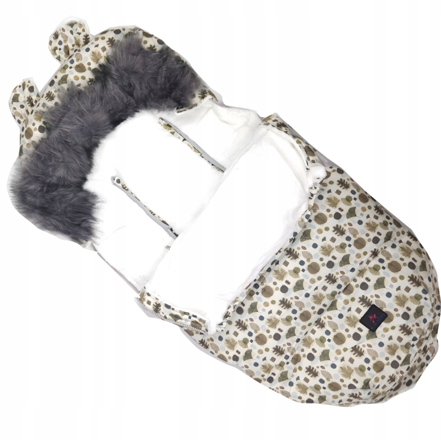Ciepły śpiworek dziecięcy do wózka i sanek z uszami, futerkiem i ociepleniem – 100 × 46 cm