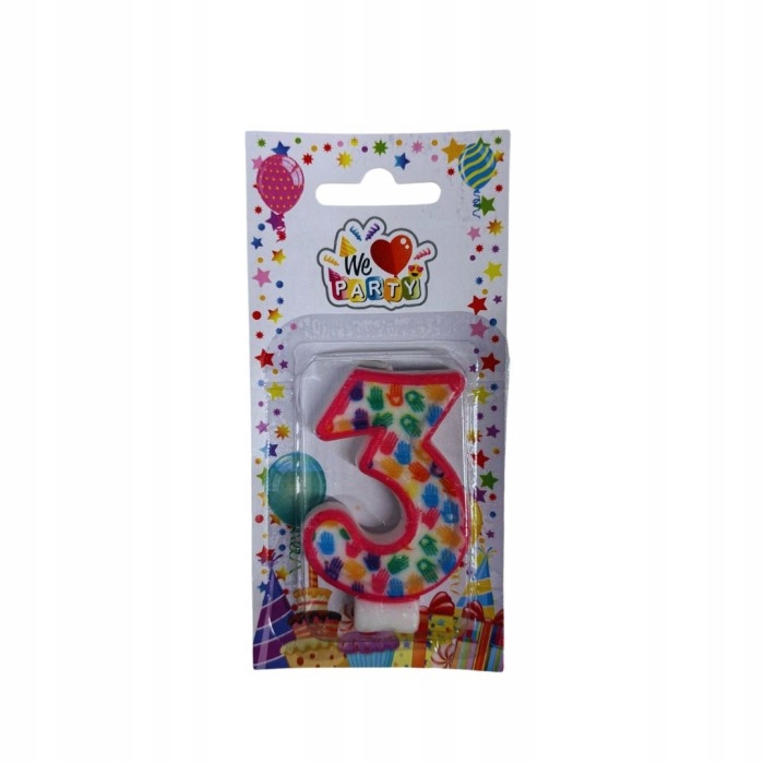 ŚWIECZKA URODZINOWA NA TORT w kształcie cyfry 3 kolorowa 7cm
