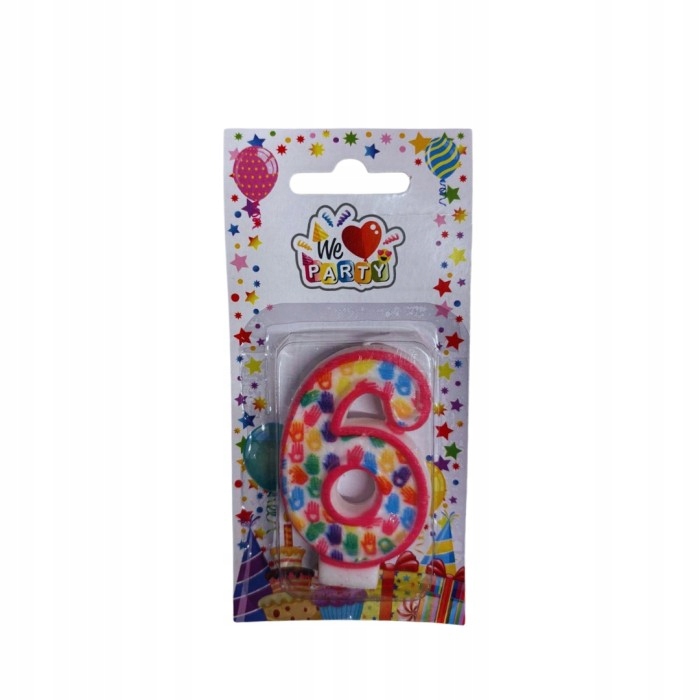 ŚWIECZKA URODZINOWA NA TORT w kształcie cyfry 6 kolorowa 7cm