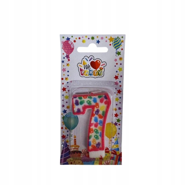 ŚWIECZKA URODZINOWA NA TORT w kształcie cyfry 7 kolorowa 7cm