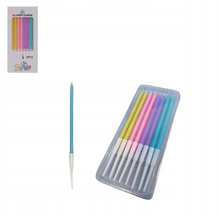 Kolorowe świeczki urodzinowe na tort – zestaw 8 sztuk (14 cm)