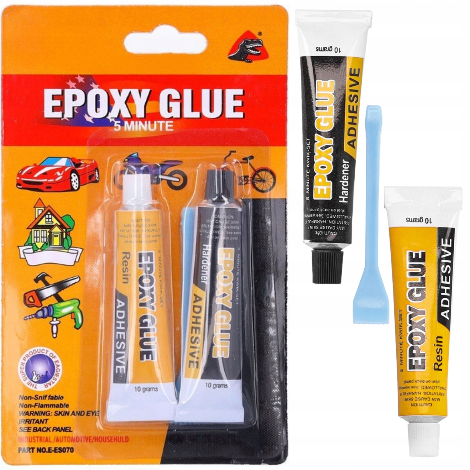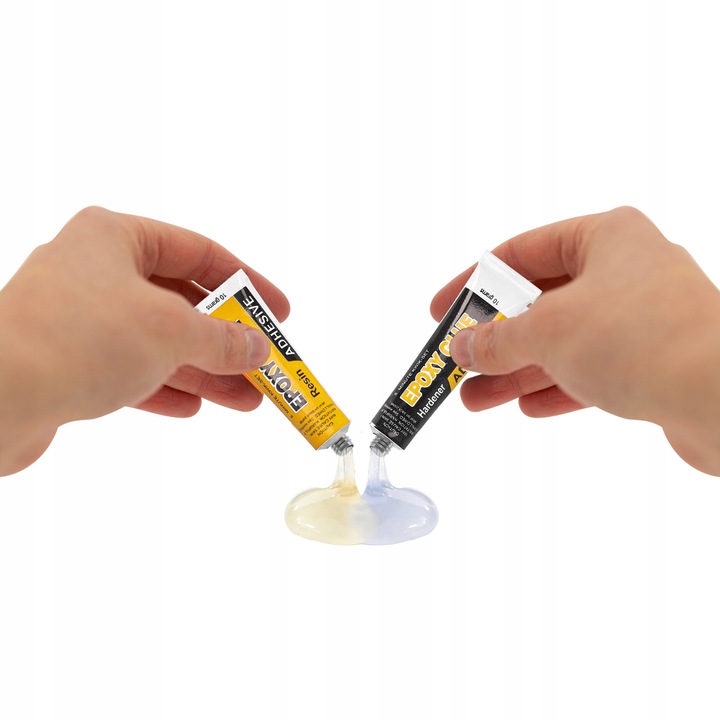 Wyjątkowo mocny i uniwersalny klej epoksydowy, który działa na zasadzie połączenia dwóch składników – żywicy i utwardzacza. Obie substancje znajdują się w oddzielnych tubkach, a ich zmieszanie powoduje szybkie i trwałe wiązanie.