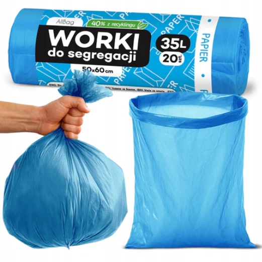 WORKI NA ŚMIECI 35L 20szt. niebieskie do segregacji na papier 9 mikronów