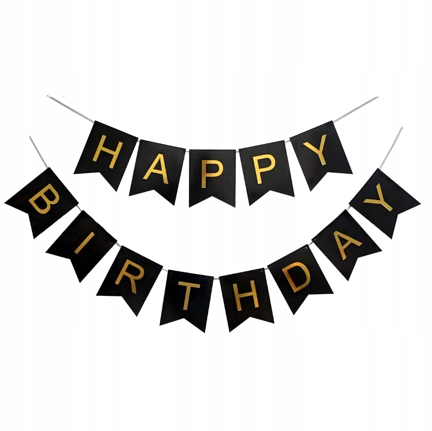 - Girlanda baner z napisem „HAPPY BIRTHDAY”