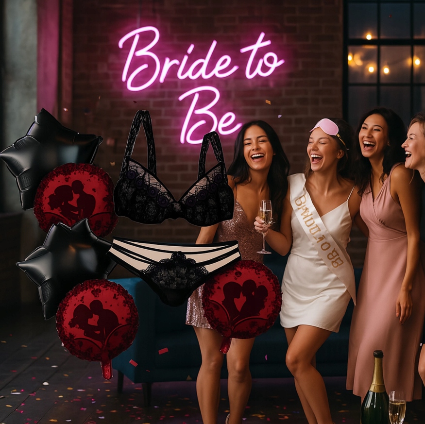 Zabawny i efektowny zestaw balonów foliowych stworzony z myślą o wieczorach panieńskich i imprezach tematycznych. W komplecie znajdziesz uroczy balon w kształcie biustonosza, figlarny balon w kształcie majtek oraz balony okrągłe i gwiazdki, które razem tworzą humorystyczną i stylową dekorację.