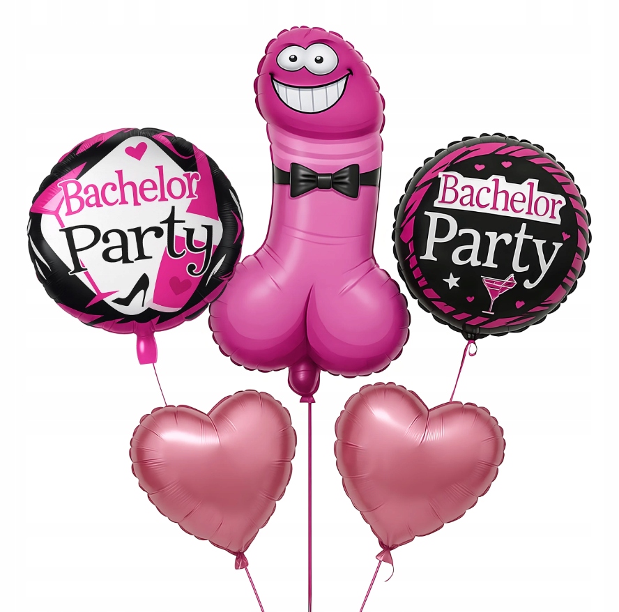 Kompletny, zabawny zestaw balonów foliowych stworzony z myślą o niezapomnianym wieczorze panieńskim. W skład dekoracji wchodzi imponujący balon w kształcie „członka” oraz serca i balony z nadrukiem, które tworzą humorystyczną i efektowną oprawę imprezy.