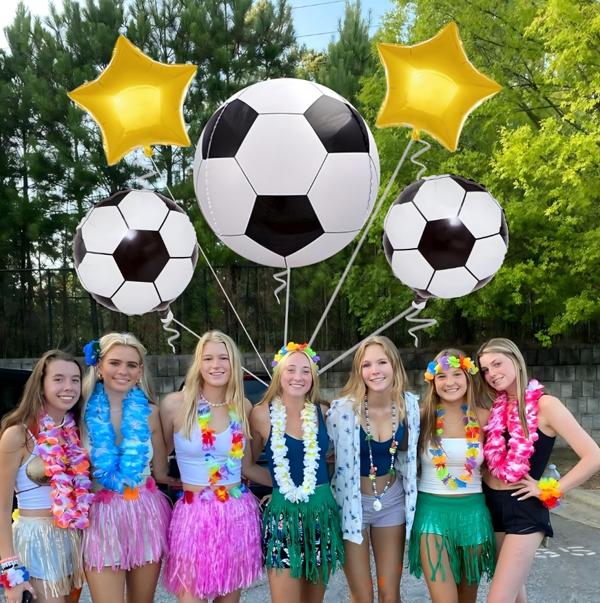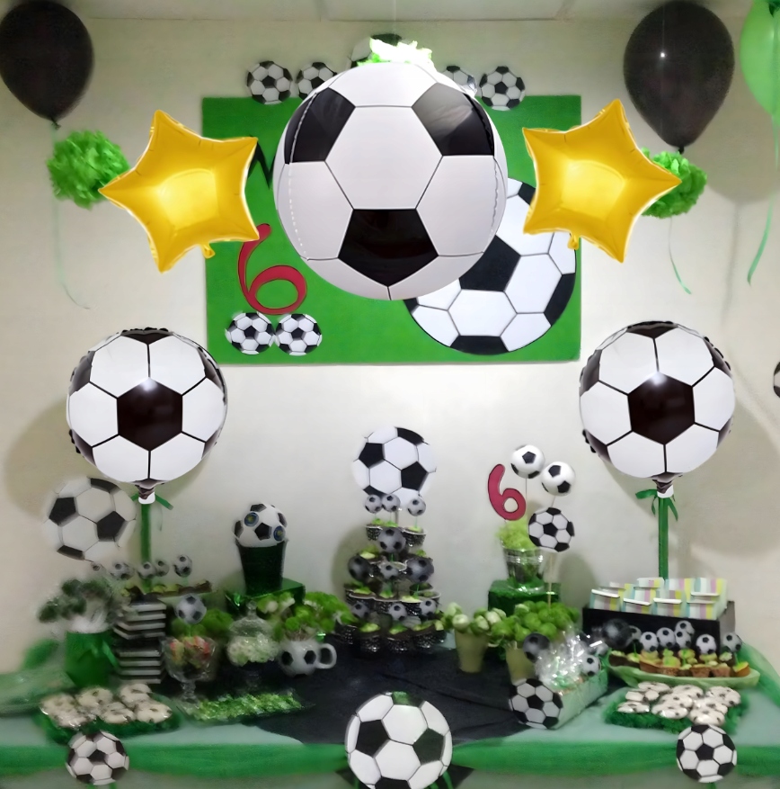 - Sportowy motyw z akcentem złota – duża piłka (55,8 cm), 2 mniejsze piłki (45,7 cm) i 2 złote gwiazdki (45,7 cm) tworzą kompletny zestaw.
