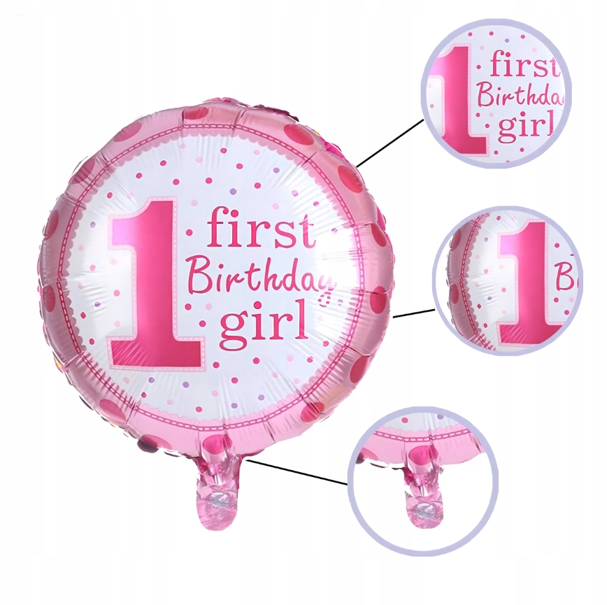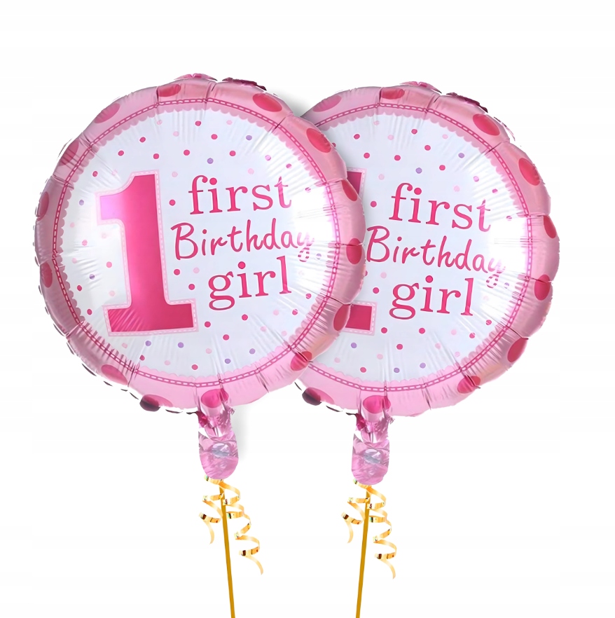 - 2 × balon okrągły „First Birthday Girl” – 45,7 cm