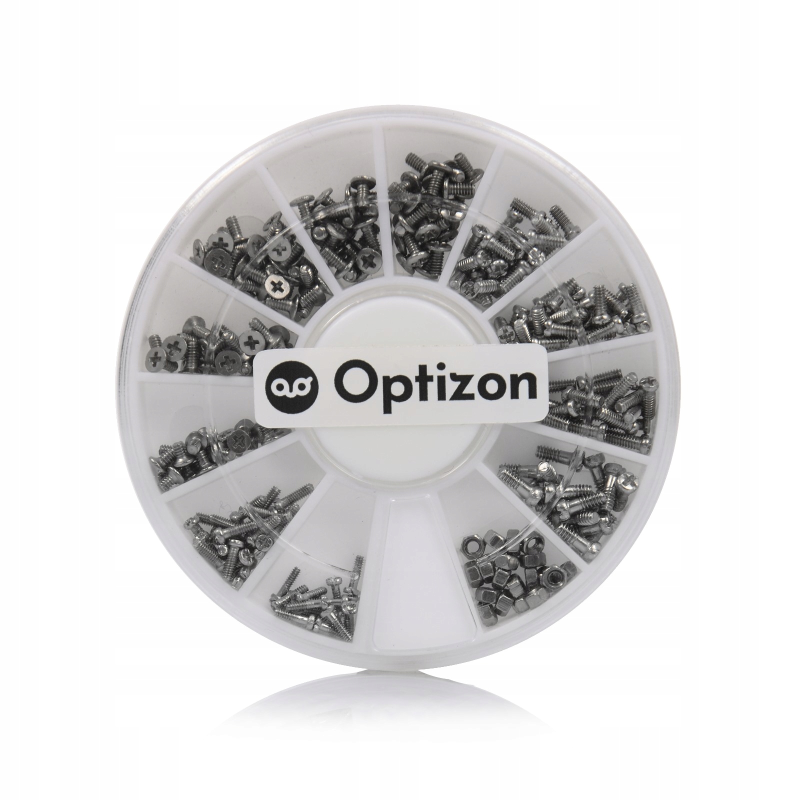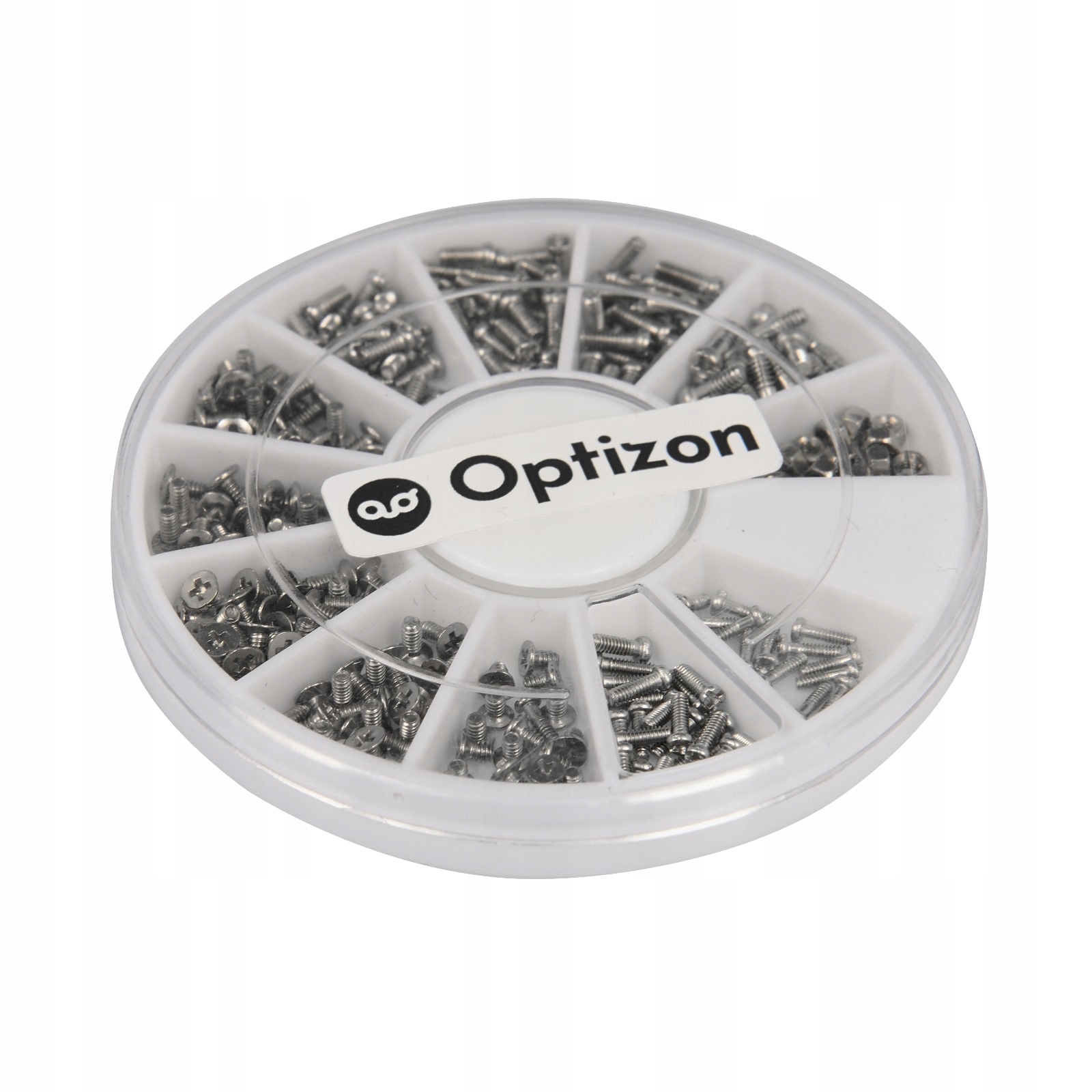 W komplecie znajdują się śrubki o różnych rozmiarach, dostosowane do najpopularniejszych modeli okularów: