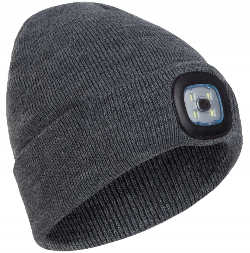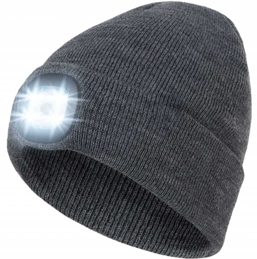 ZIMOWA CZAPKA Z LATARKĄ LED czołówka robocza do biegania z lampką szara