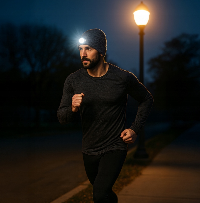 - Funkcja 2 w 1 – jednocześnie czapka i czołówka, idealna do biegania, spacerów, jazdy na rowerze czy pracy w ciemności.